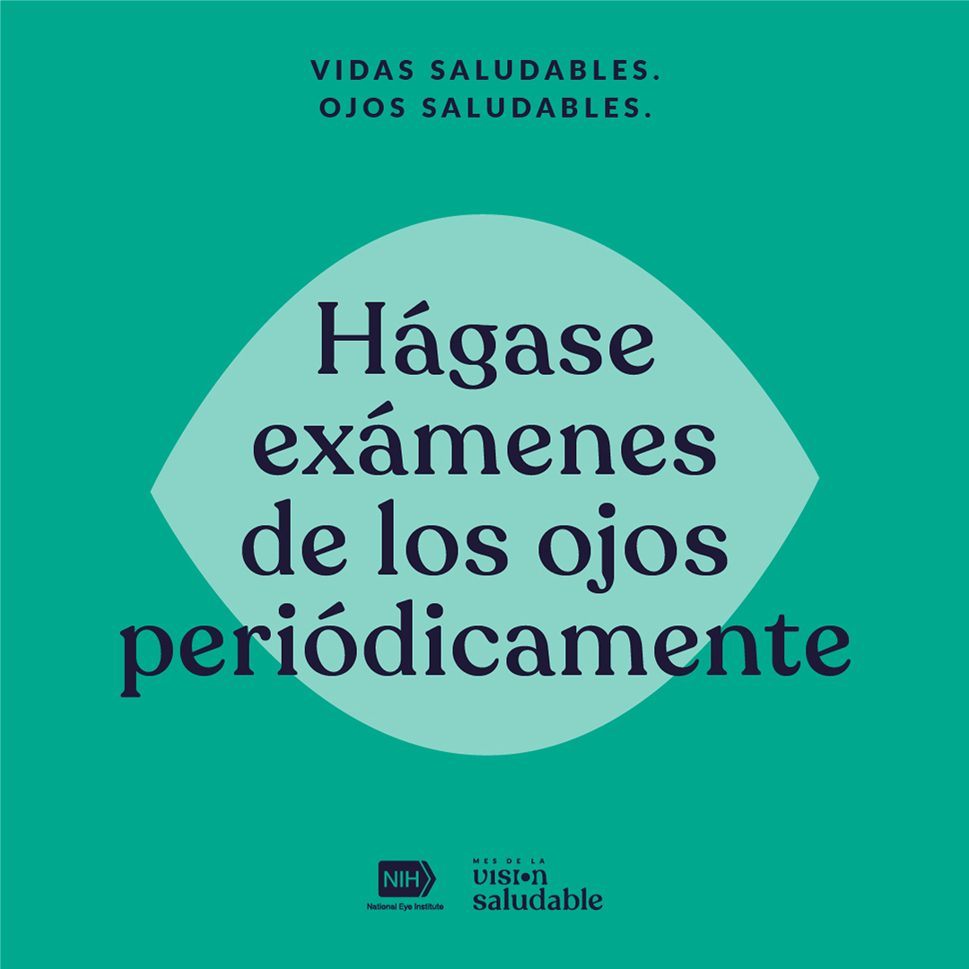¡Es el #MesDeLaVisionSaludable 2025 y el @NationalEyeInstitute quiere que todos sepan cuán importante es hacerse un #ExamenDeLosOjos anual. Aunque muchas enfermedades y afecciones oculares no tienen señales tempranas, los oculistas pueden ver problemas pequeños antes de que se conviertan en un problema grande. Ayude a compartir información con estos recursos: https://www.nei.nih.gov/espanol/HVM. #VidasSaludablesOjosSaludables
