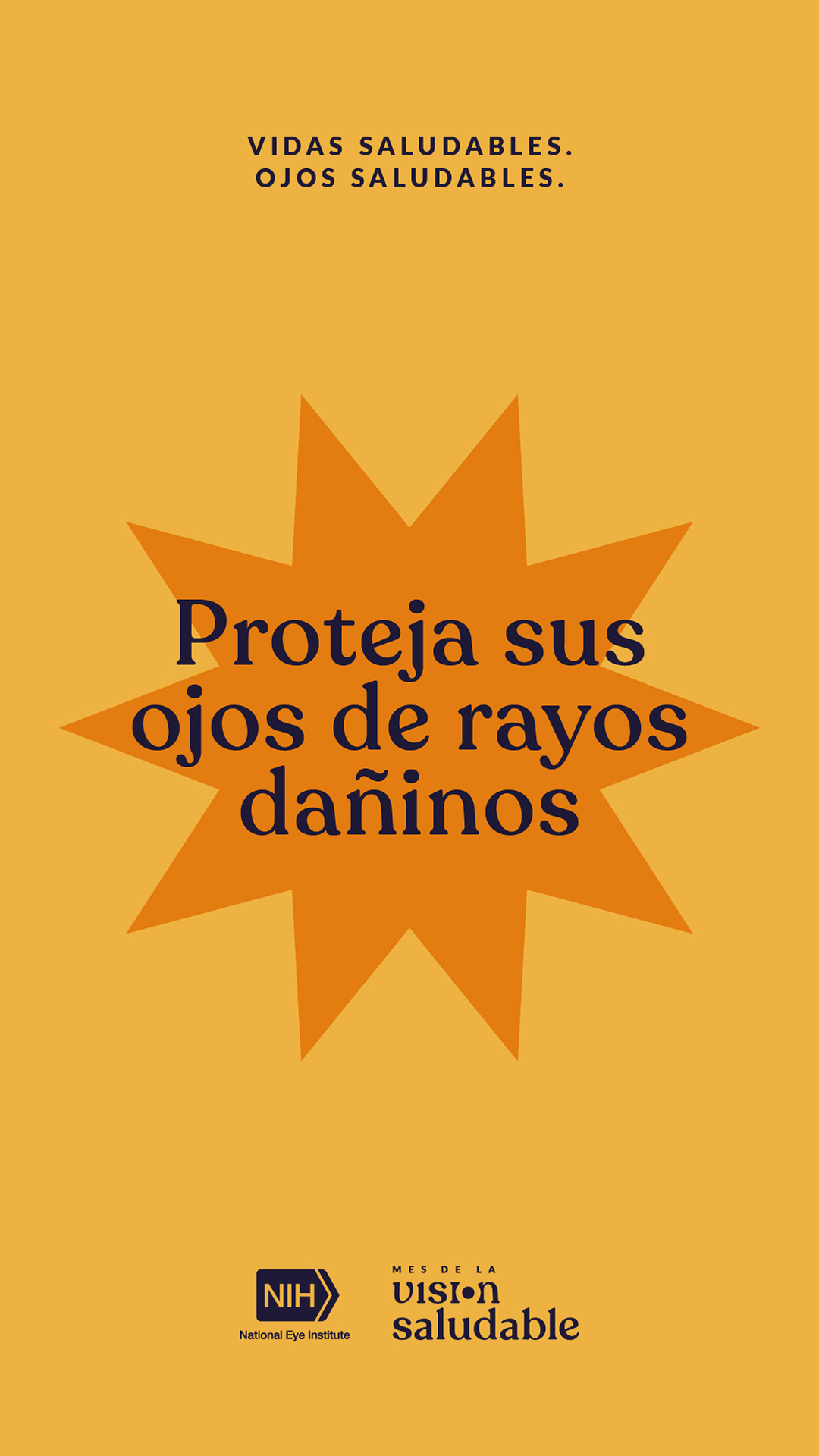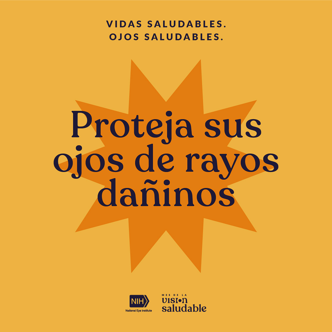 Pasar mucho tiempo en el sol puede hacerle daño a su visión. Para proteger sus ojos, use gafas de sol que bloqueen rayos UVA y UVB, ¡aún en días nublados! Comparta más recursos sobre salud ocular y celebre el #MesDeLaVisionSaludable del @NatEyeInstitute: https://www.nei.nih.gov/espanol/HVM