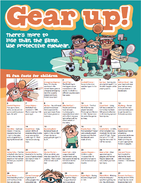 This poster has sports trivia, fun facts about eyes, and eye safety tips.