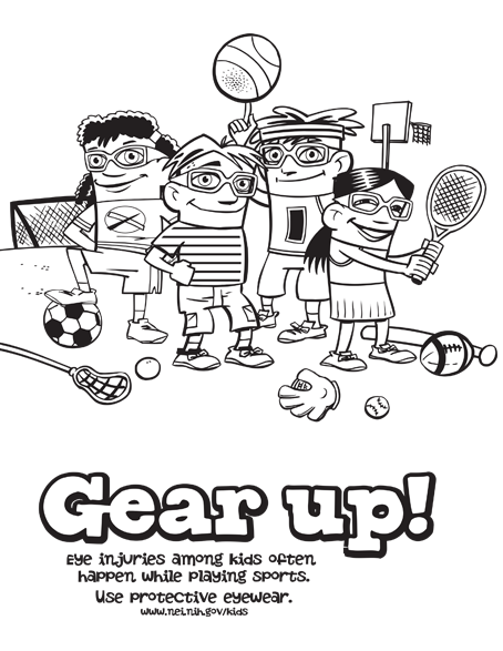 These are fun black-and-white graphics of other kids using protective eyewear in sports. Print them out and color them in.