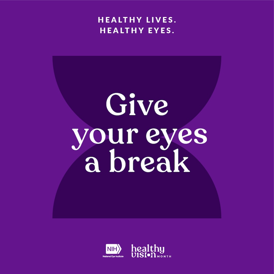 Looking at screens can tire out your eyes and mind. Protect them both with 20-20-20 breaks: Every 20 mins, look at something 20 ft away for 20 secs. Learn more from @NatEyeInstitute: https://www.nei.nih.gov/KeepYourEyesHealthy. #HealthyVisionMonth