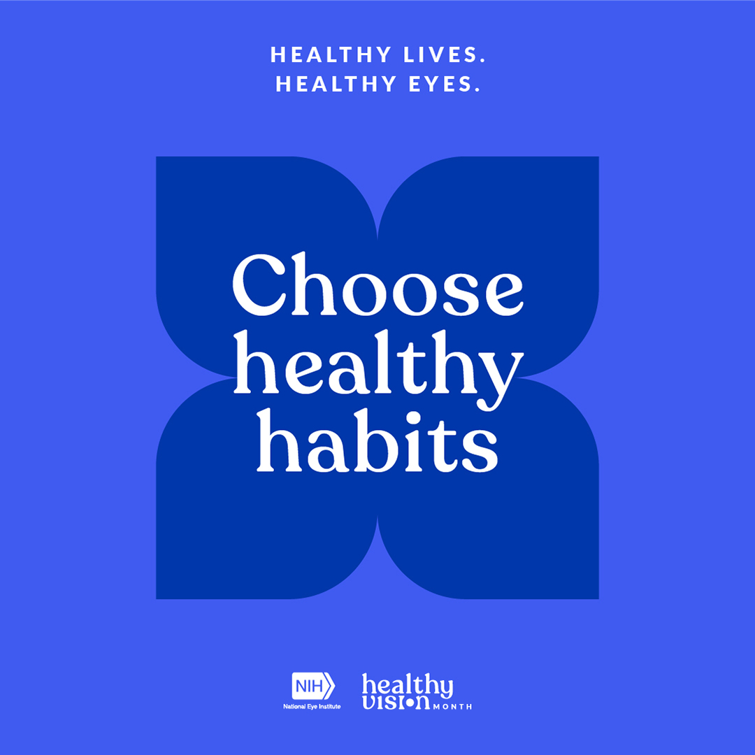 Your eyes work hard! One way to care for them is to make healthy lifestyle choices like eating a balanced diet and staying active. This #HealthyVisionMonth, give your eyes the care they deserve. Get more info on eye-healthy choices from @NatEyeInstitute: https://www.nei.nih.gov/KeepYourEyesHealthy