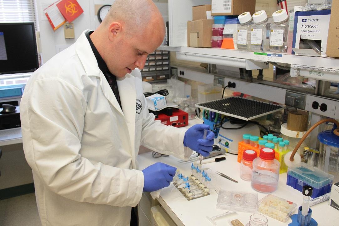 Hotaling at work in the Bharti Lab, NEI Unit on Ocular Stem Cells